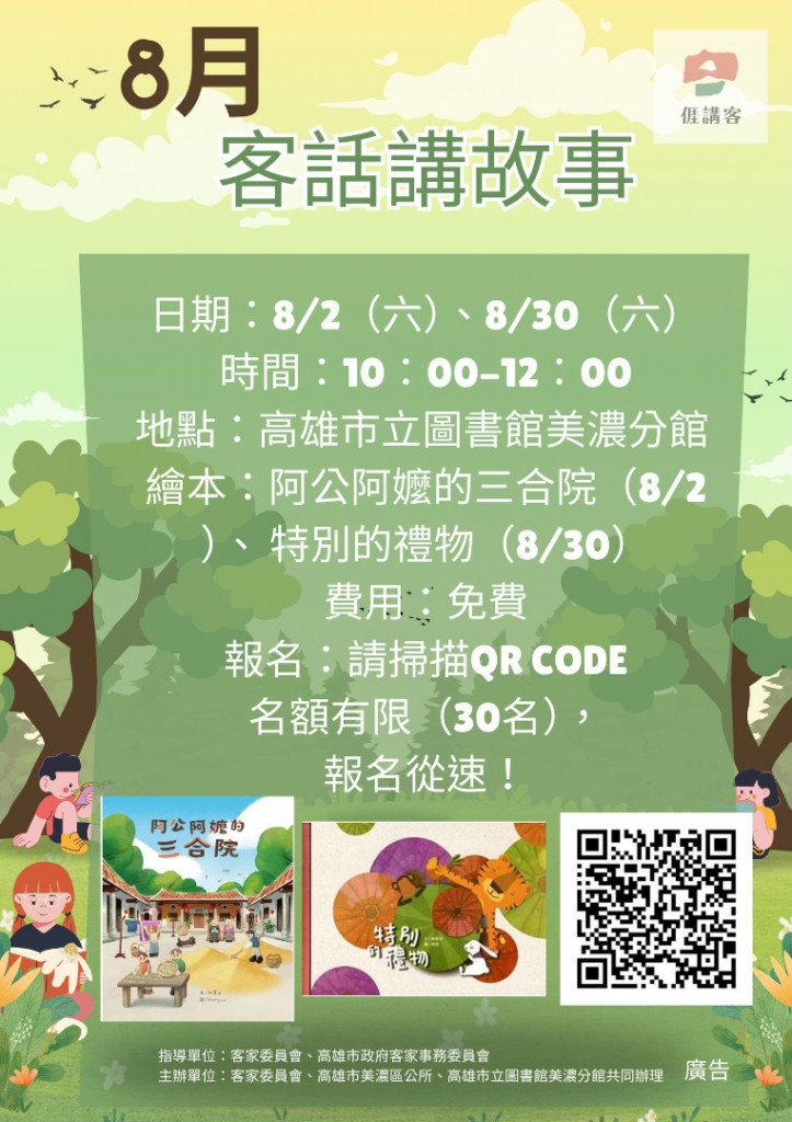 歡迎細人仔8/30朝晨10點來圖書館聽先生講用客家油紙遮仔來做主題个故事-「特別的禮物」!